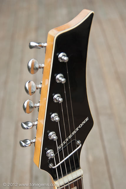 - Neck: Bolt-on solid Maple neck with Brazilian(?) Rosewood fretboard, Pearloid block inlays and triple bound celluloid edge (w/b/w); 25½″; 22 frets with zero fret; 1-5⁄8″ at nut.