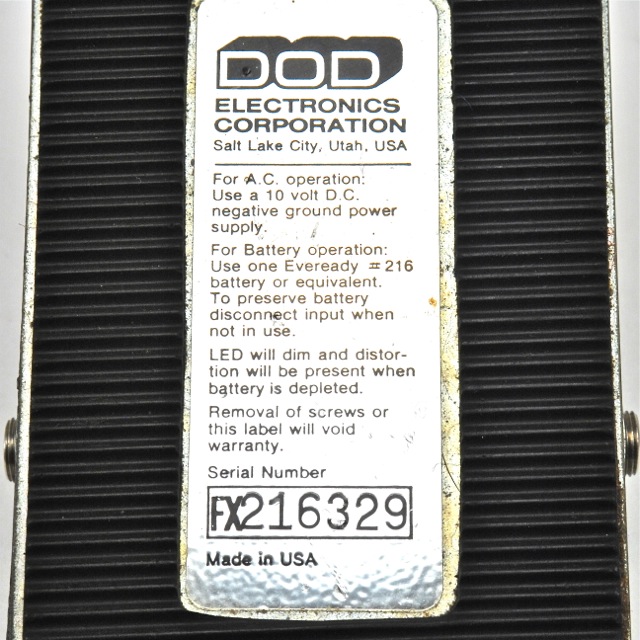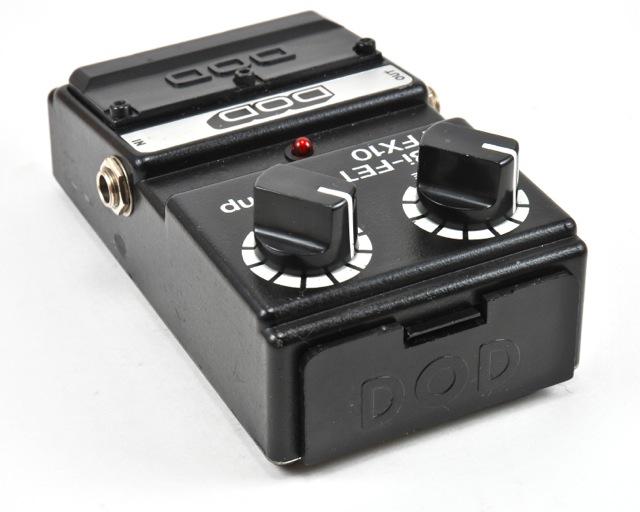 I was looking for a good analog pedal to overdrive my tube amp without loosing that “great Gretsch sound” of my Electromatic. The DOD FX10 was originally built as a preamp for acoustic guitars, but I had read some pretty good things about using the FX10 as a clean boost, so thought I’d give it a try. I ordered this one online from Studio 1525 (BTW: Studio 1525 has a huge selection of vintage pedals). According to the America’s Pedal web site, the FX line of pedals was first introduced by DOD in 1982, and the FX10 was part of the first group of FX pedals released that year. It remained in production through the mid-1990’s. According to the date code on this FX10’s pots, it was made in 1983. This sample is the original version that has the really cool larger knobs, similar to some other respected DOD pedals of that era.